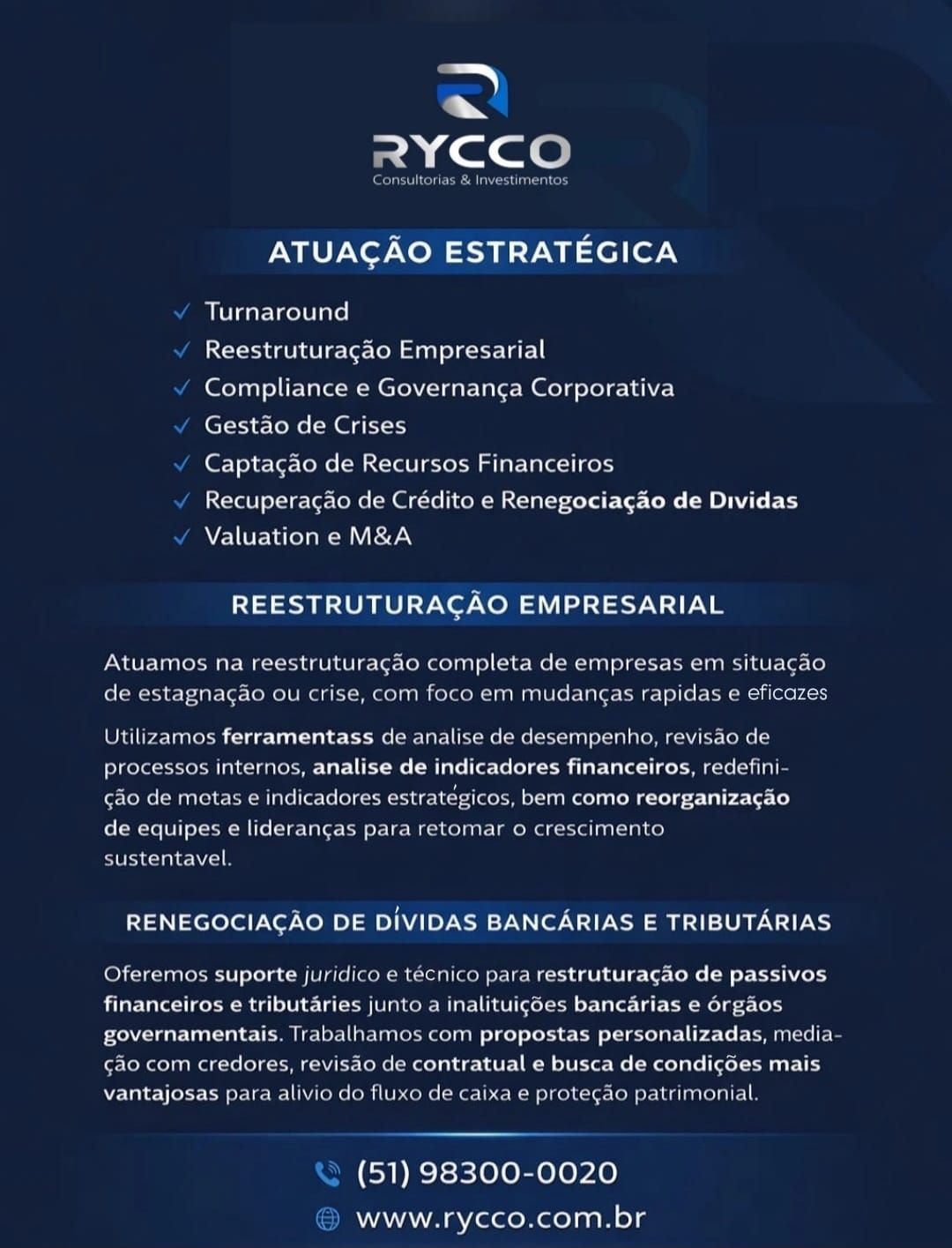 CEO da Rycco – Especialista em Governança Corporativa e Reestruturação Empresarial.